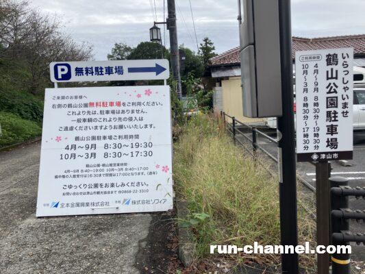 津山城に一番近そうな無料駐車場に車を停めてスタート!桜祭りの時期は有料になるそうですが、基本的には無料で利用できます。お昼過ぎに到着しましたが、結構沢山の車が止まっていて、あと数台で満車という状況でした。