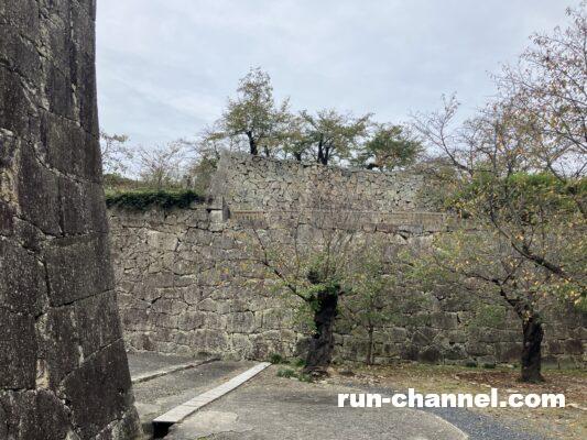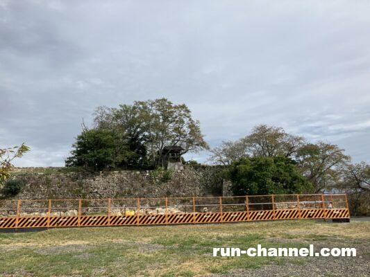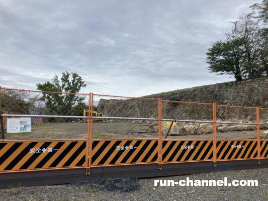 一角に工事中のフェンスが張り巡らされていましたが、昨年7月の大雨の影響で石垣が崩落してしまったそうです;崩落した石の数は650〜700個に及ぶそうです!無事に復元するといいですね。
